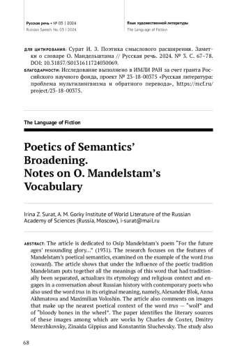Статья посвящена стихотворению Осипа Мандельштама «За гремучую доблесть грядущих веков…» (1931). Предмет исследования — особенности поэтической семантики Мандельштама, рассмотренные на примере слова «трус». В статье показано, что Мандельштам под давлением поэтической традиции собирает воедино все исторически разошедшиеся значения этого слова, актуализирует его этимологию и религиозный контекст и вступает таким образом в разговор о русской истории с поэтами-современниками, также употреблявшими слово «трус» в его исконном значении, — с Александром Блоком, Анной Ахматовой, Максимилианом Волошиным. Попутно комментируются образы, составляющие ближайший поэтический контекст слова «трус», — образ «волка» и «кровавых костей в колесе», определяются литературные источники этих образов — произведения Шарля де Костера, Дмитрия Мережковского, Зинаиды Гиппиус, Константина Случевского. Ставится вопрос о возможности перевода полисемантических элементов стиха на иностранные языки, а также вопрос о необходимости «обратного перевода» поэтического текста на язык породившей его эпохи посредством языкового комментария.