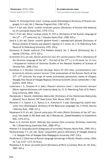 Polyakova E. N. Slovar’ leksiki permskikh pamyatnikov XVI - nachala XVIII veka [Dictionary of the vocabulary of Perm monuments of the 16th - early 18th century]. Vol. 1. Perm, Publ. House of Perm St. Univ., 2010. 428 p.