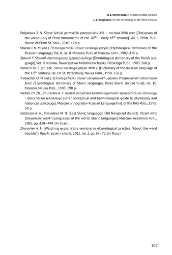 36. Шанский Н. М. (ред.). Этимологический словарь русского языка. Т. II, вып. 8 (К). М.: Изд-во Московского университета, 1982. 470 с.