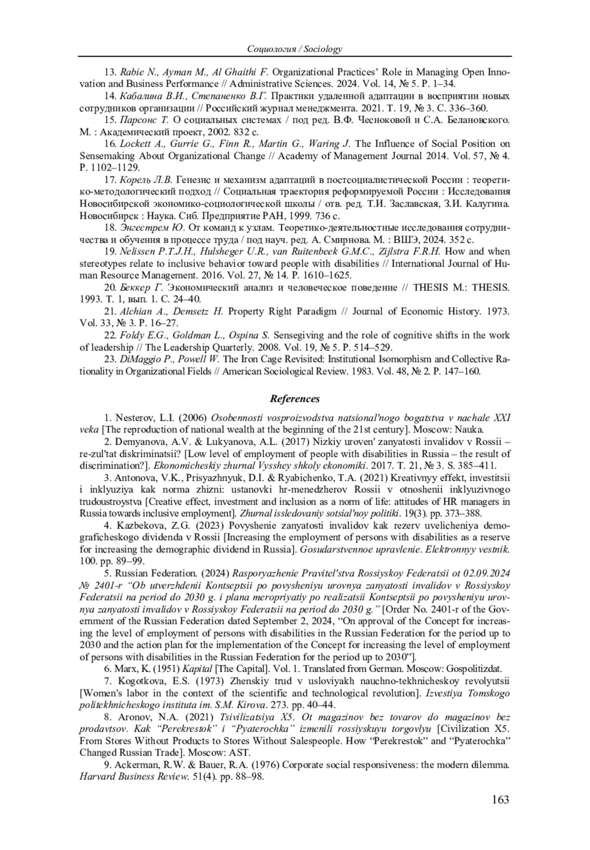 4. Казбекова З.Г. Повышение занятости инвалидов как резерв увеличения демографического дивиденда в России // Государственное управление. Электронный вестник. 2023. № 100. С. 89-99. EDN: SGWWDS
