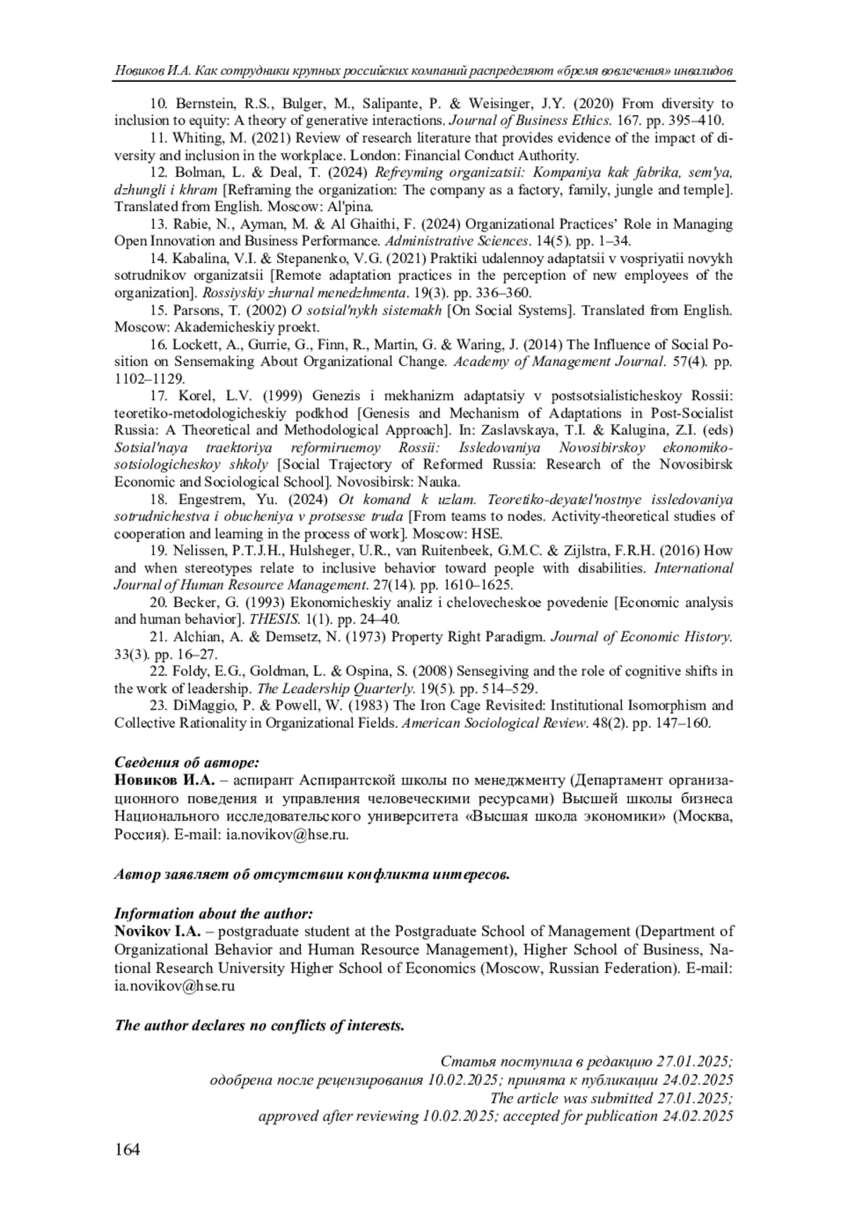 10. Bernstein R.S., Bulger M., Salipante P., Weisinger J.Y. From diversity to inclusion to equity: A theory of generative interactions // Journal of Business Ethics. 2020. Vol. 167. P. 395-410. EDN: EPXSYS