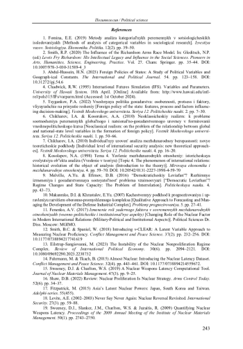 14. Fuhrmann M., Tkach B. Almost Nuclear: Introducing the Nuclear Latency Dataset // Conflict Management and Peace Science. 2015. Vol. 32, № 4. С. 443-461. DOI: 10.1177/0738894214559672