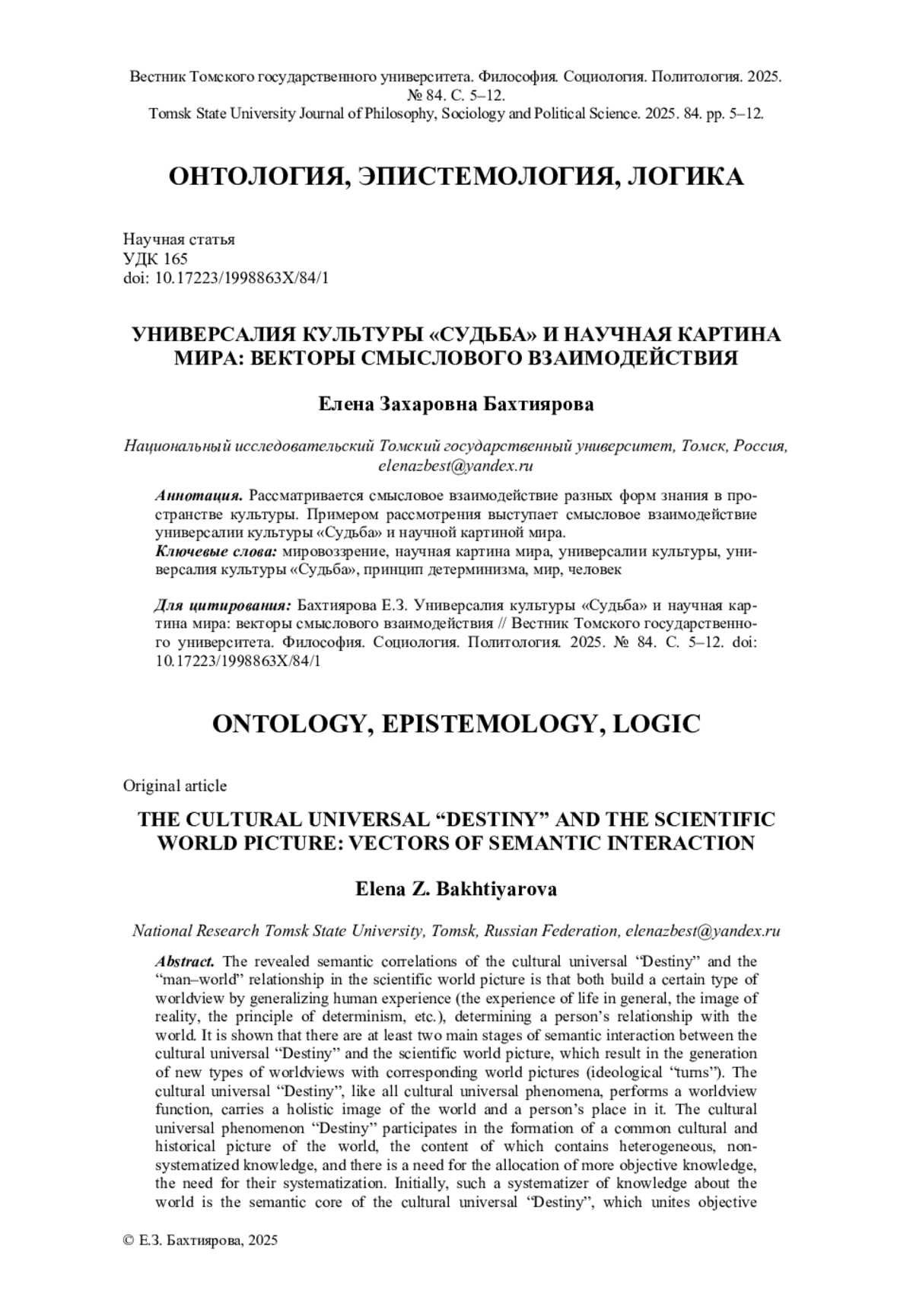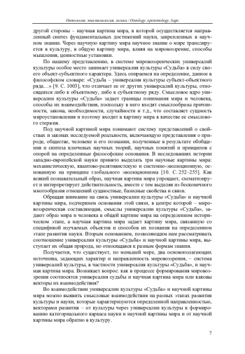 Рассматривается смысловое взаимодействие разных форм знания в пространстве культуры. Примером рассмотрения выступает смысловое взаимодействие универсалии культуры «Судьба» и научной картиной мира.