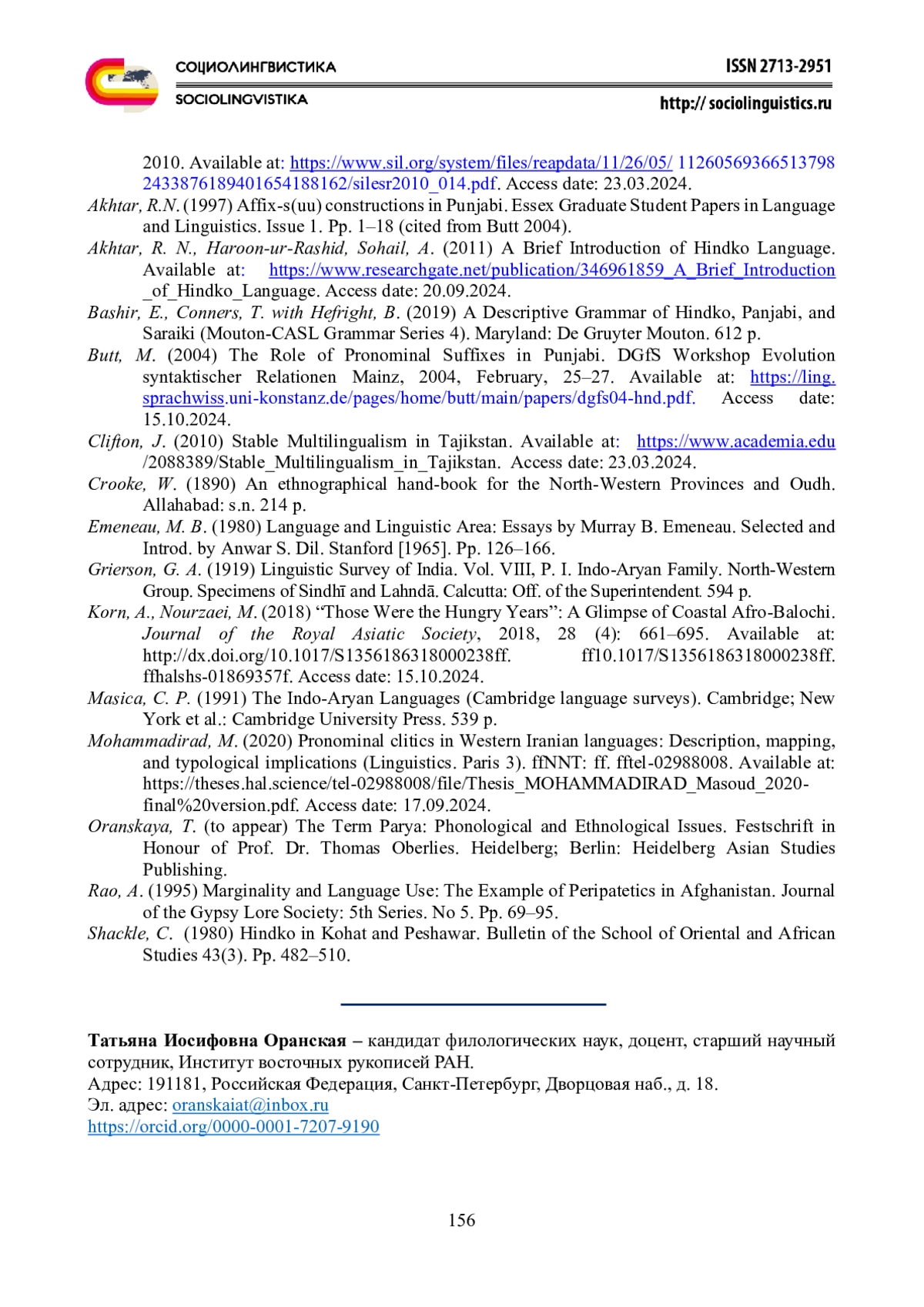 19. Oranskaia, T. (to appear) The Term Parya, Phonological and Ethnological Issues, Festschrift in Honour of Prof. Dr. Thomas Oberlies. Heidelberg, Berlin, Heidelberg Asian Studies Publishing.