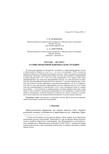 Фразеологические выражения, как хорошо известно, могут обладать различной степенью устойчивости и вариативности (см., например, [Баранов, Добровольский 1996]), образуя своего рода шкалу от единиц с полностью фиксированным составом, ср. ничтоже сумняшеся, до конструкций с фиксированной (так называемой «якорной») частью и слотами, заполняемыми лексемами из широкого набора альтернатив, ср. какой такой Х (последние, правда, не всегда причислялись к фразеологизмам, ср. тем не менее классическую концепцию В. В. Виноградова, допускающую, в частности, «единство на расстоянии» [Виноградов 1977: 131], а также понятие синтаксического фразеологизма в [Баранов, Добровольский 2008] или фразеологизма-конструкции в [Баранов, Добровольский 2014; 2023]).