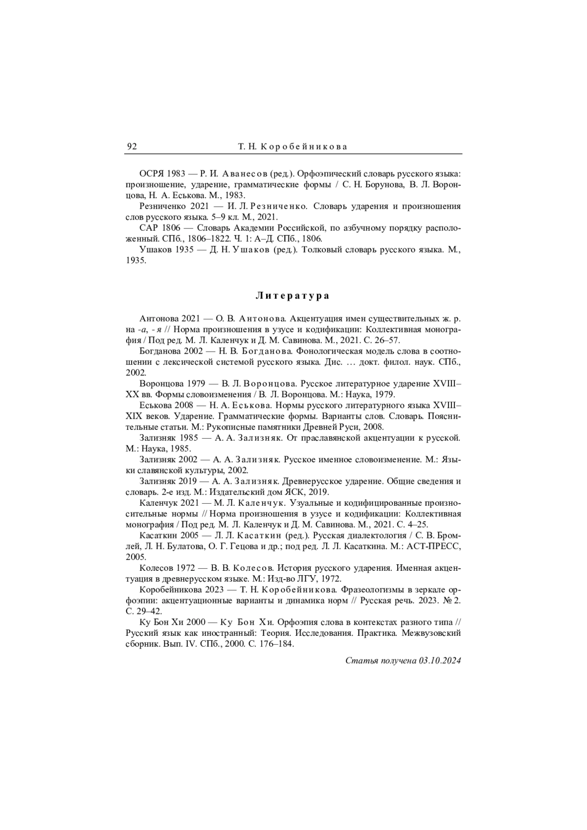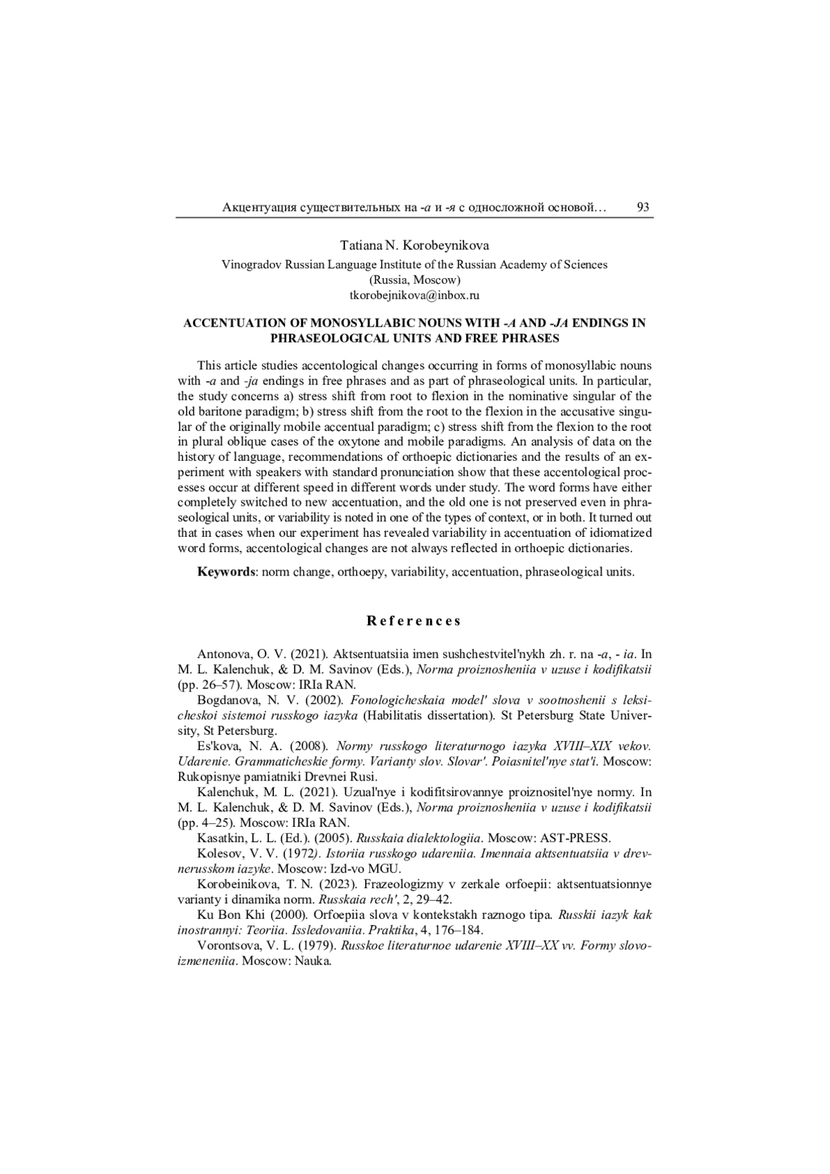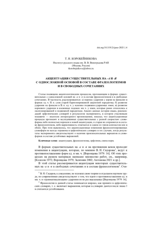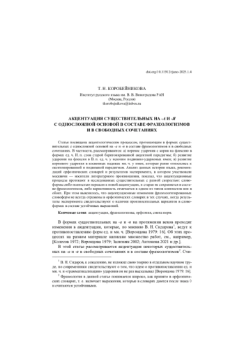 18. Коробейникова 2023 - Т. Н. Коробейникова. Фразеологизмы в зеркале орфоэпии: акцентуационные варианты и динамика норм // Русская речь. 2023. № 2. С. 29-42. EDN: CSQEDZ