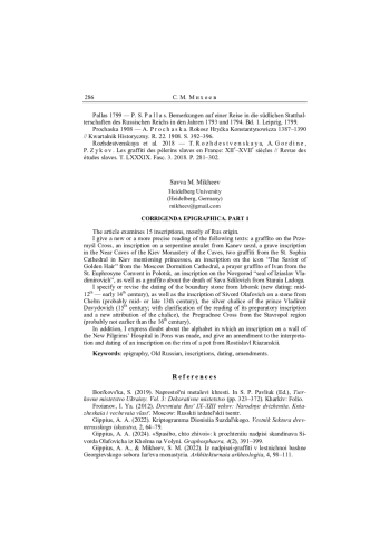 60. Rozhdestvenskaya et al. 2018 - T. Rozhdestvenskaya, A. Gordinе, P. Zykov. Les graffiti des pèlerins slaves en France: XIIe-XVIIe siècles // Revue des études slaves. T. LXXXIX. Fasc. 3. 2018. P. 281-302. EDN: WGJFOL