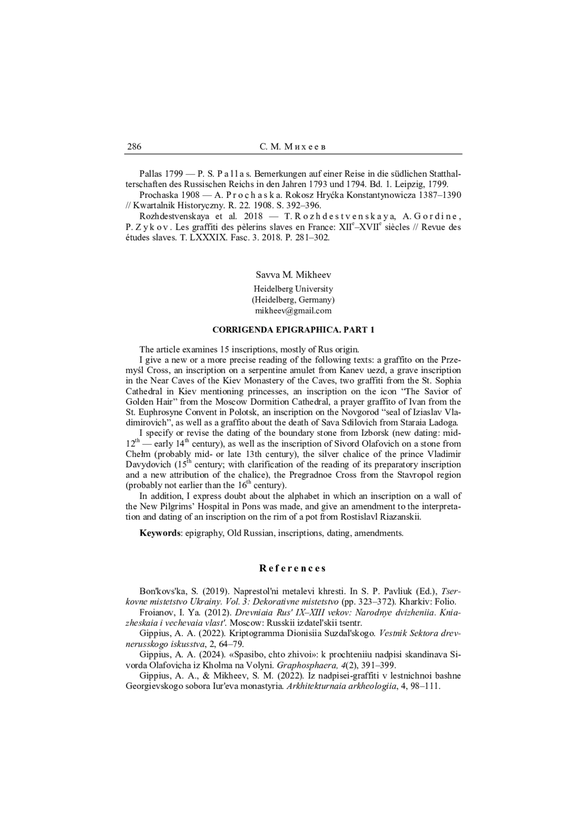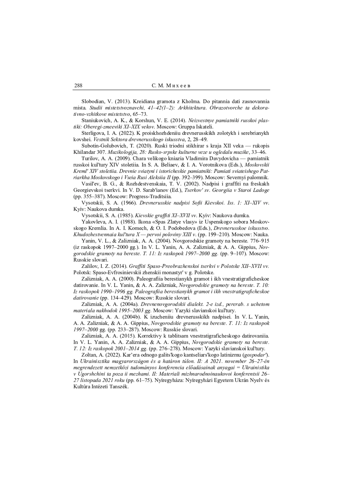 57. Gippius et al., в печати - A. A. Gippius, R. N. Krivko, S. M. Mikheev. Early Slavic Epigraphy // Handbook of Epigraphic Cultures (Studies in Manuscripts Cultures). Berlin; Boston: De Gruyter, в печати.