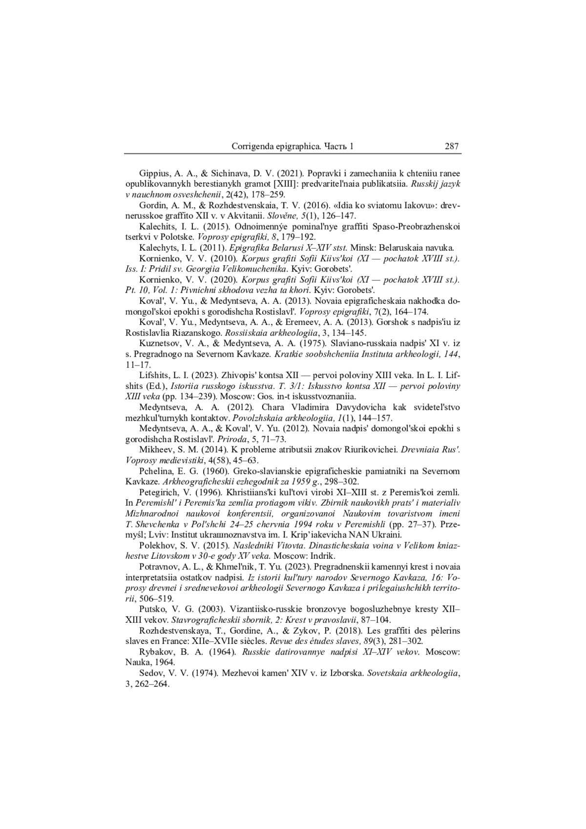 16. Гиппиус, Сичинава 2021 - А. А. Гиппиус, Д. В. Сичинава. Поправки и замечания к чтению ранее опубликованных берестяных грамот [XIII]: предварительная публикация // Русский язык в научном освещении. 2021. № 2 (42). С. 178-259.