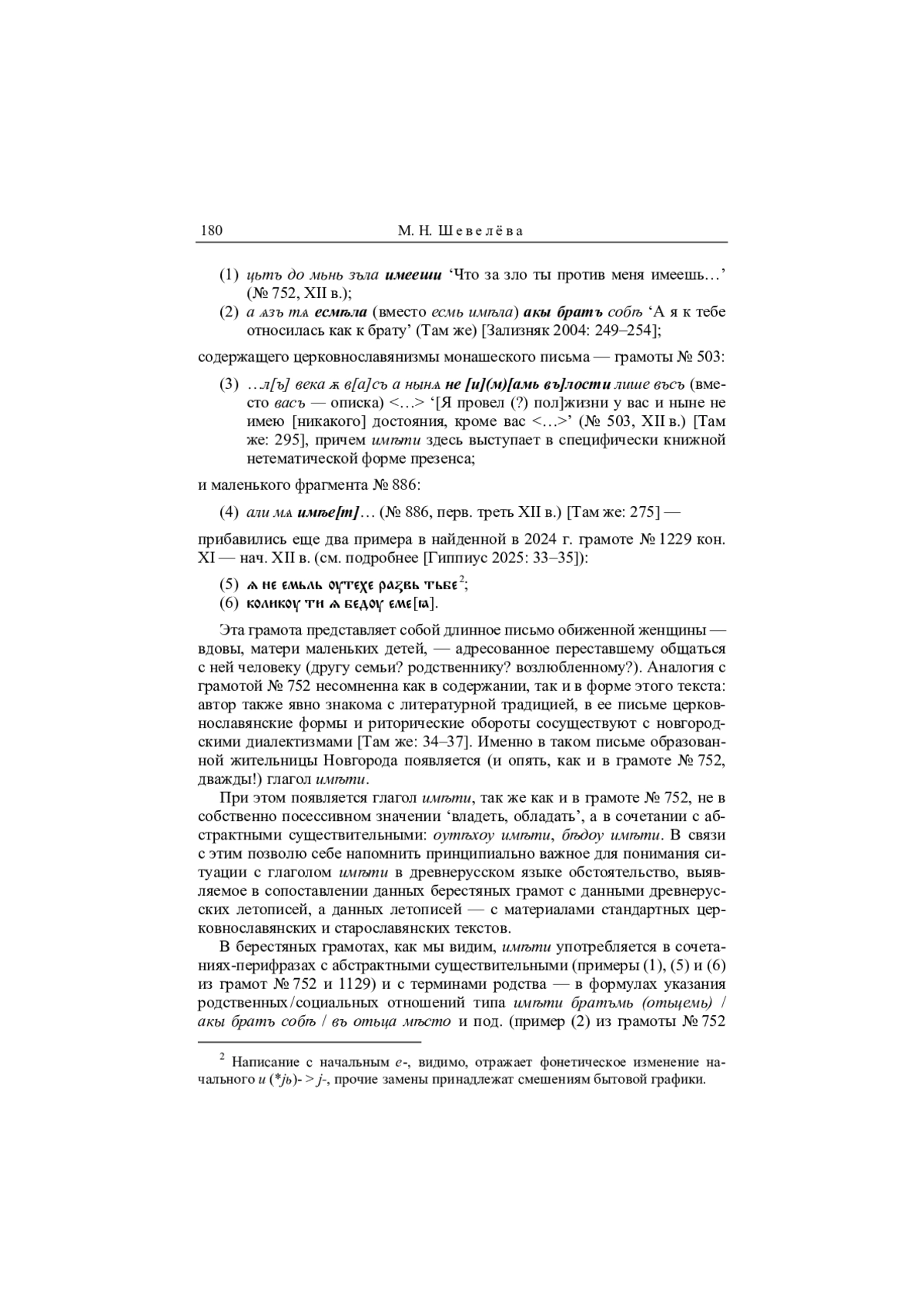 49. Шевелева 2024 - М. Н. Шевелева. Глаголы имѣти - ти - имати в ранних древнерусских памятниках в сравнении со старославянскими // Славянское и балканское языкознание. [Вып. 24.] Палеославистика - 5 / Отв. ред. В. С. Ефимова. М.: Институт славяноведения РАН, 2024. С. 333-362. EDN: JUDASN