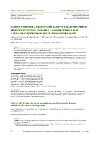 Результаты. Полученные нами результаты в рамках 16S рРНК секвенирования подтвердили необходимость в повышенной настороженности как в отношении воспалительных процессов и новообразований в кишечнике, так и в развитии патологических изменений со стороны сердечно-сосудистых заболеваний (ССЗ), таких как липометаболизм, метаболический синдром, ожирение.