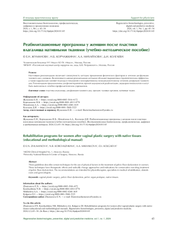 Zhuravleva AS. Principy vybora khirurgicheskikh tekhnologiy dlya korrektsii oslozhnennykh form prolapsa genitaliy i ocenka ikh effektivnosti: Dis…. kand. med. nauk. M. 2009. (In Russ.).