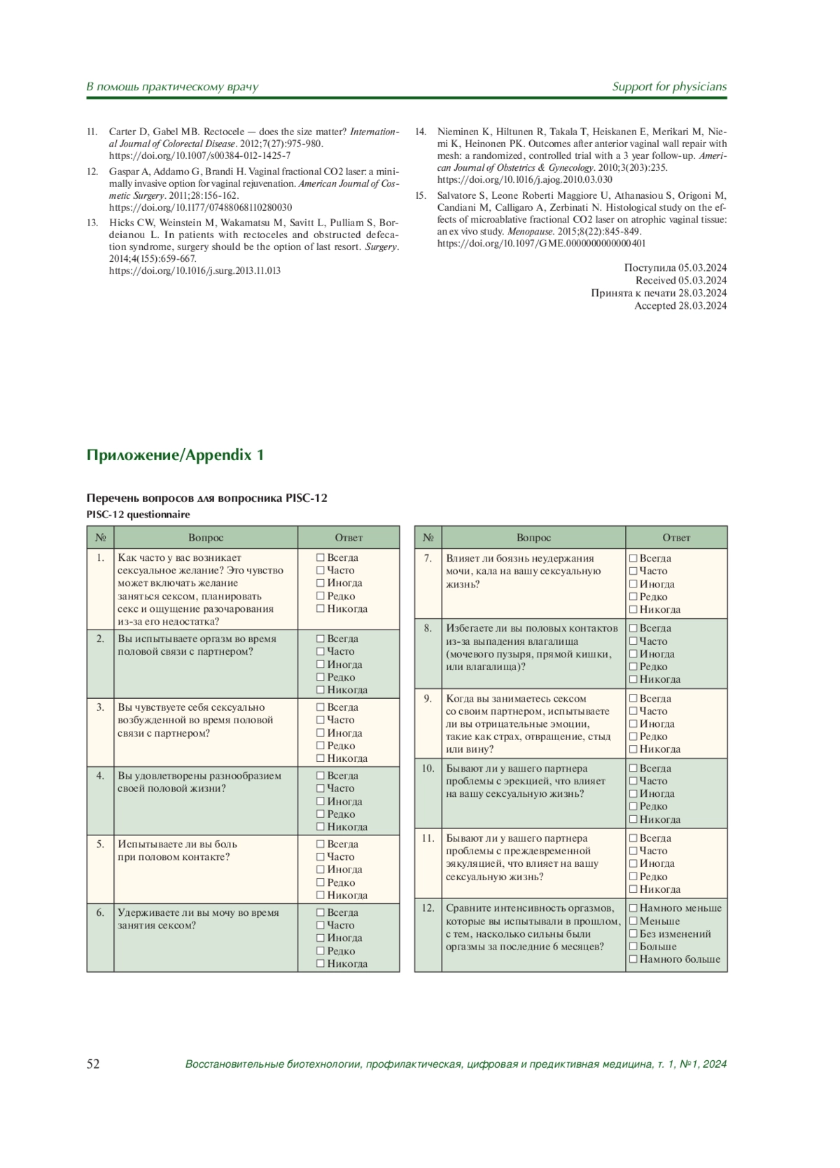 Bezhenar’ VF, Bogatyreva EV, Pavlova NG. Pod red. Ajlamazyan E.K. Prolaps tazovykh organov u zhenshchin: etiologiya, patogenez, principy diagnostiki: posobie dlya vrachey. SPb.: Izdatel’stvo N-L; 2010;48. (In Russ.).