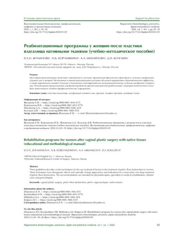 Настоящие рекомендации включают совокупность методик применения физических факторов в лечении дисфункции тазового дна у женщин. Включенные в данные рекомендации методики обладают выраженным терапевтическим эффектом, а также кардинально меняют подходы и показания к консервативному немедикаментозному лечению дисфукции тазового дна. Рекомендации предназначены для физиотерапевтов, врачей медицинской реабилитации, акушеров-гинекологов и могут быть выполнены в лечебно-профилактическом учреждении.