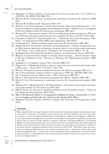 16. Неклесса А. И. Неопознанная культура. Гностические корни постсовременности // Глобальное сообщество: Картография постсовременного мира = GlobaI society: Cartography of The Post-Modern World. М.: Восточная литература, 2002. 463 с.