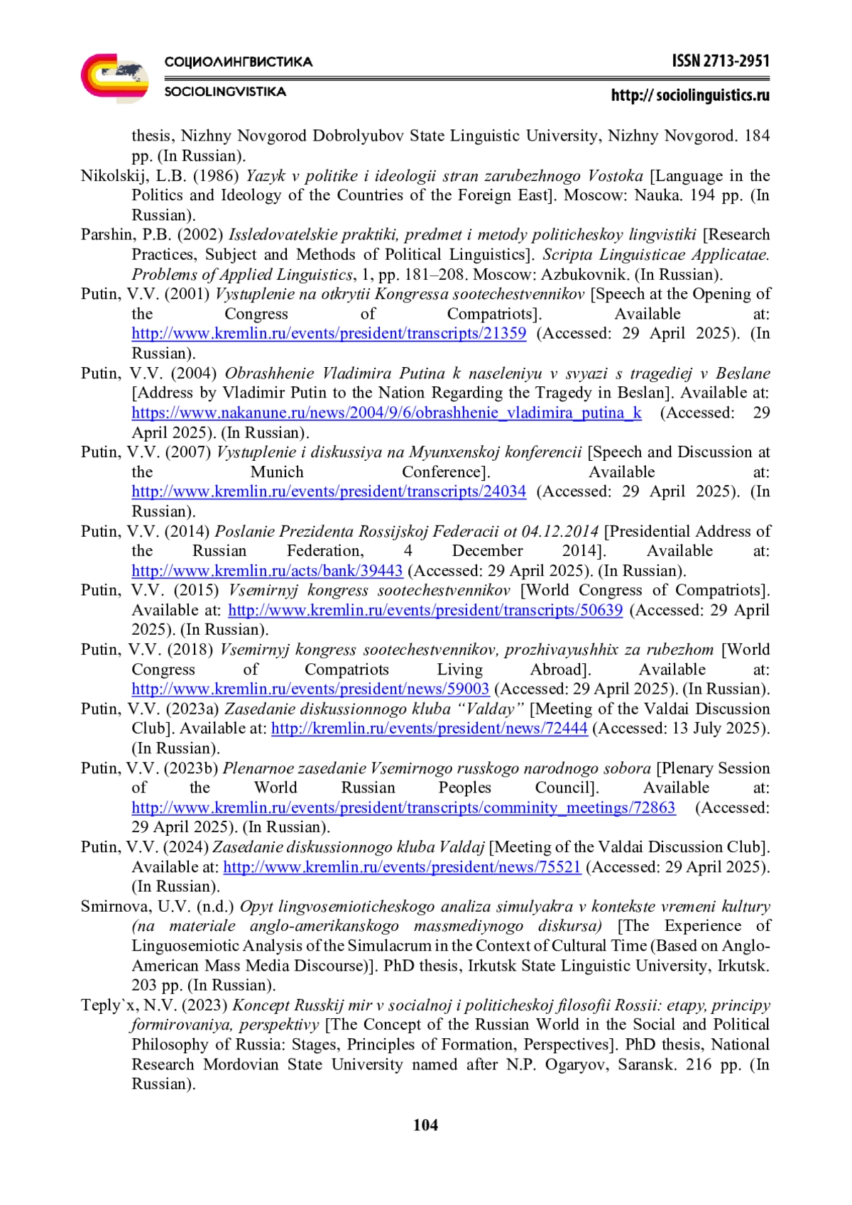 24. Паршин П. Б. (2002) Исследовательские практики, предмет и методы политической лингвистики, Scripta linguisticae applicatae. Проблемы прикладной лингвистики. Вып. 1. М. Азбуковник. С. 181-208. EDN: KZHQIP