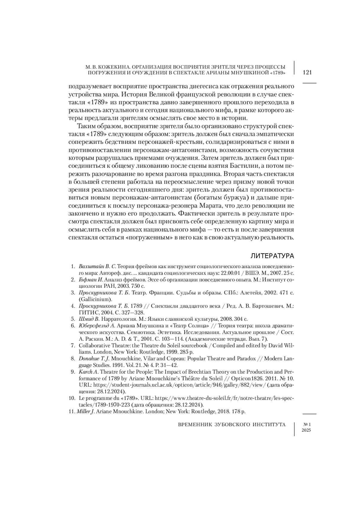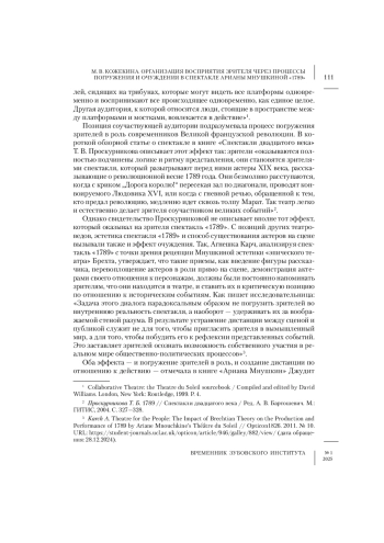 9. Karch A. Theatre for the People: The Impact of Brechtian Theory on the Production and Performance of 1789 by Ariane Mnouchkine’s Théâtre du Soleil // Opticon1826. 2011. № 10. URL: https://student-journals.ucl.ac.uk/opticon/article/946/galley/882/view/(дата обращения: 28.12.2024).