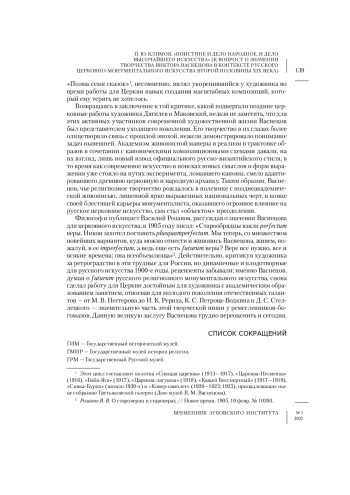 26. Федорова Л. В. “Я прилагал все силы к делу плодотворному”. Живопись В. М. Васнецова во Владимирском соборе в Киеве // Васнецовы. Связь поколений. Из XIX в XXI век / Науч. ред. О. Д. Атрощенко. М.: ГТГ, 2024. С. 70-89.
