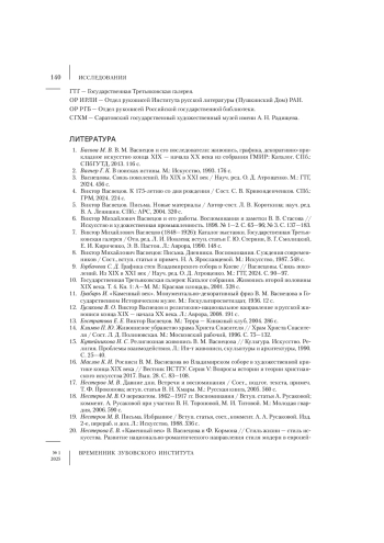 1. Басова М. В. В. М. Васнецов и его последователи: живопись, графика, декоративно-прикладное искусство конца XIX - начала XX века из собрания ГМИР: Каталог. СПб.: СПбГУТД, 2013. 116 с.