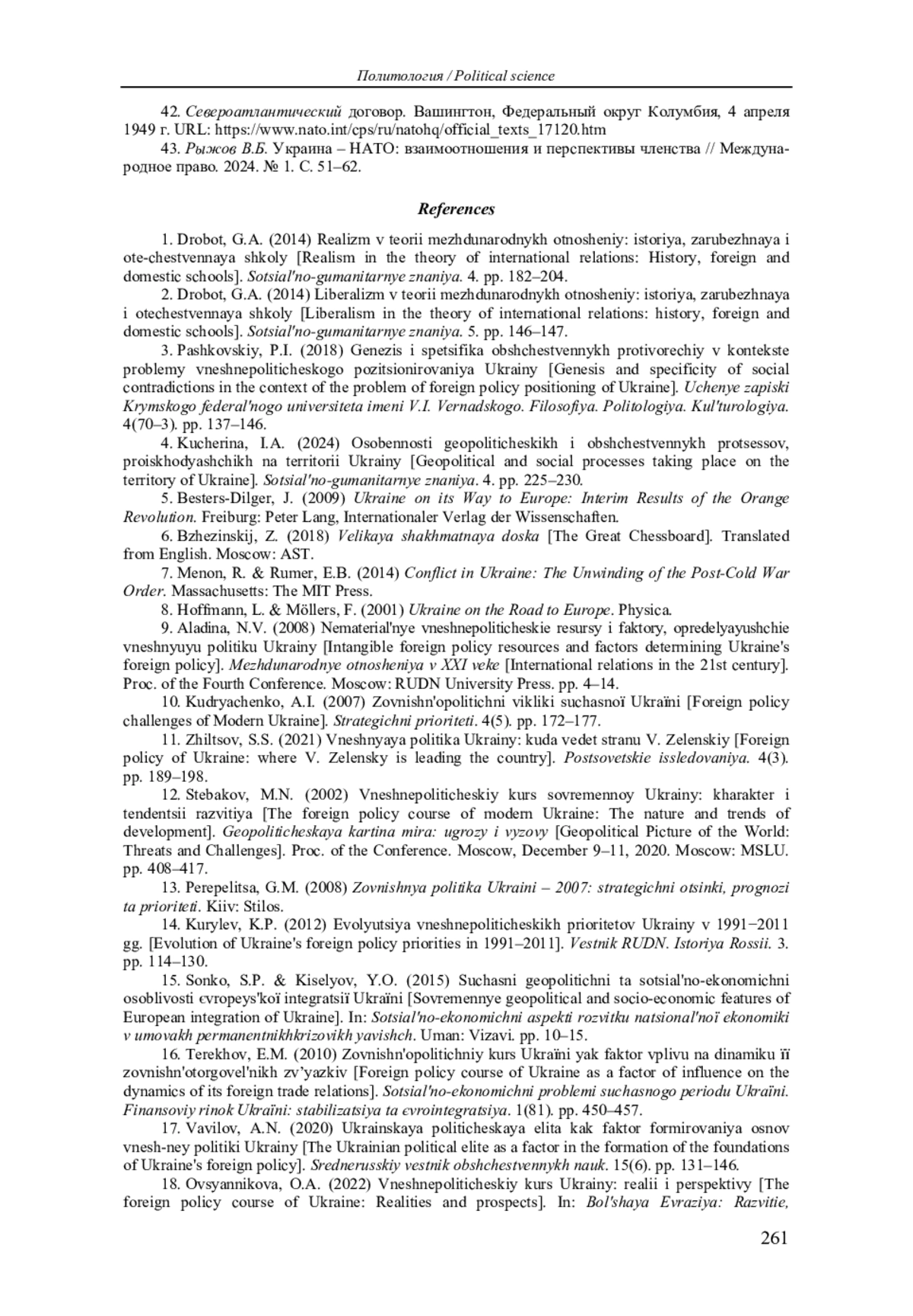 43. Рыжов В.Б. Украина - НАТО: взаимоотношения и перспективы членства // Международное право. 2024. № 1. С. 51-62.