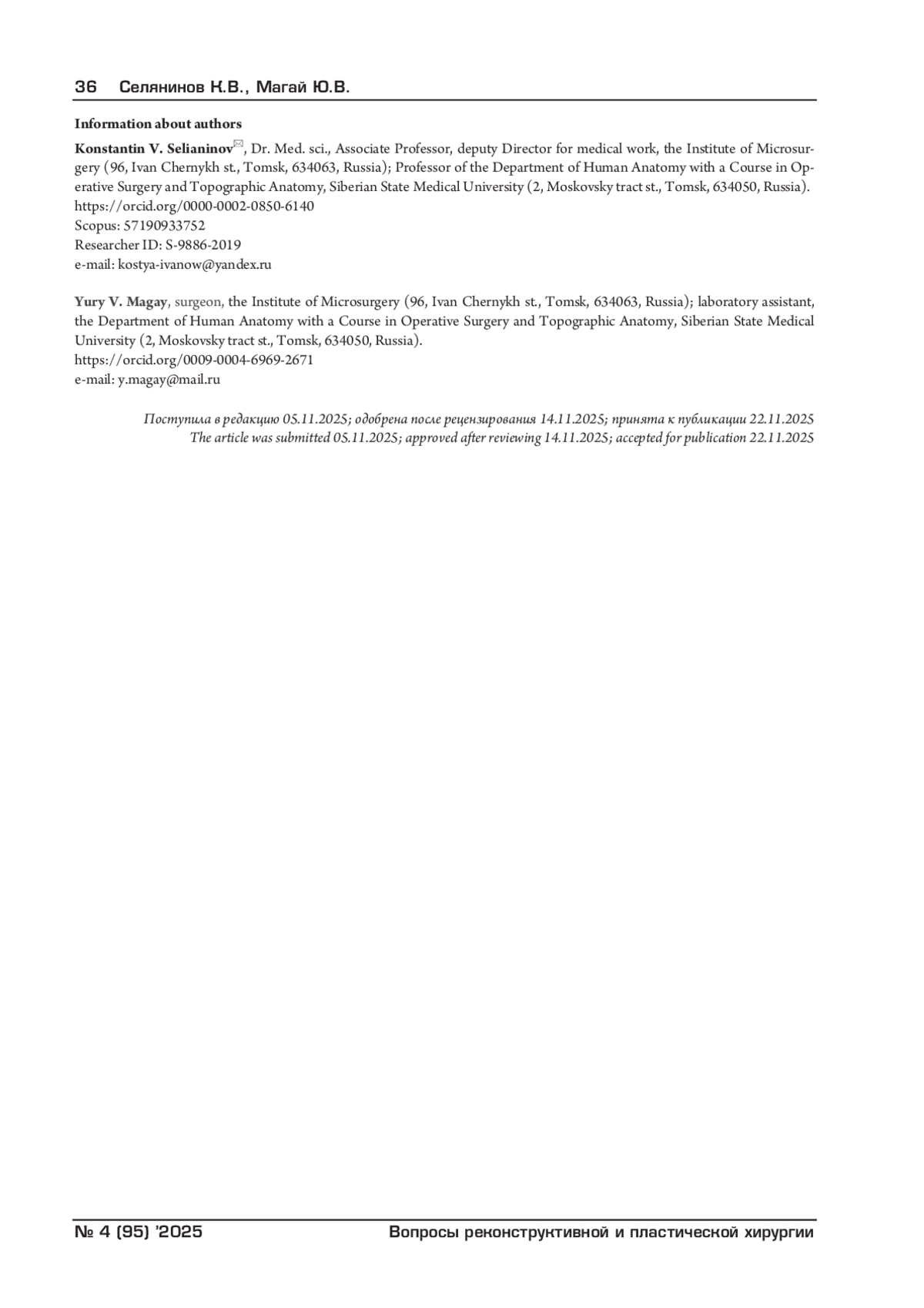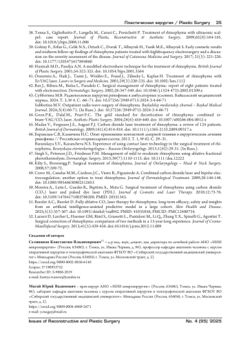 43. Субботина М.В. Радиоволновая хирургия ринофимы в амбулаторных условиях. Байкальский медицинский журнал. 2024. Т. 3, № 4. С.:66-71. DOI: 10.57256/2949-0715-2024-3-4-66-71