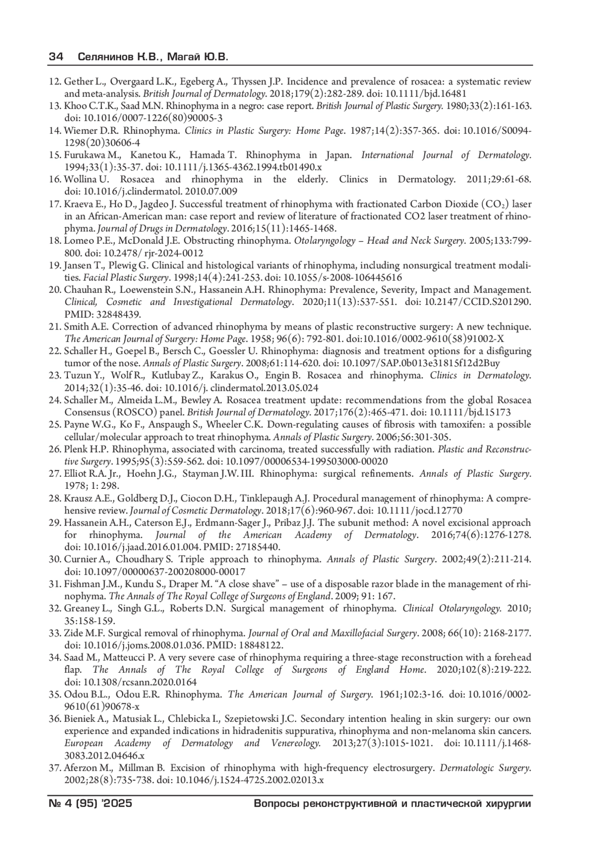 37. Aferzon M., Millman B. Excision of rhinophyma with highfrequency electrosurgery. Dermatologic Surgery. 2002;28(8):735738. DOI: 10.1046/j.1524-4725.2002.02013.x