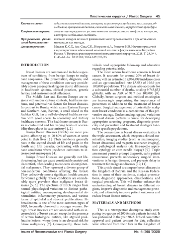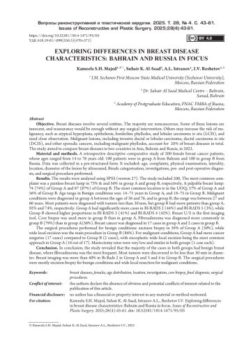 Цель исследования: сравнить заболевания молочной железы в Бахрейне и России в 2022 г.