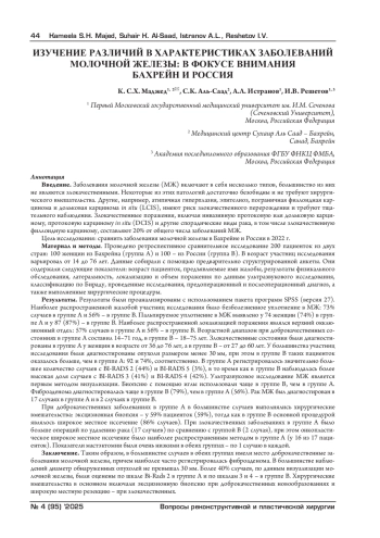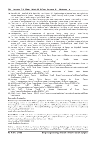 41. Аль-Саад С., Аль-Шенави Х., Аль-Марабех А., Аль-Шенави Н. и Яган Р. Стоит ли изучать латерализацию при раке молочной железы? Опыт Бахрейна. BMC cancer, 2022; 22(1): 1-7. https://link.springer.com/article/-y. DOI: 10.1186/s12885-022-10063 EDN: WNKHVW