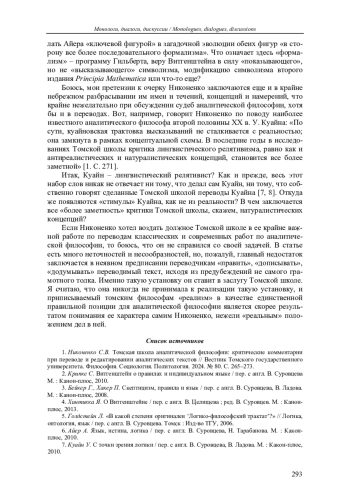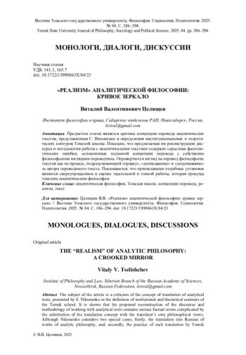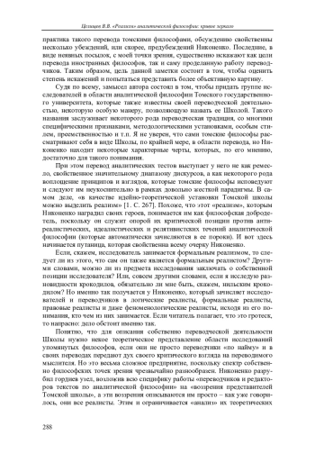 «Томская школа аналитической философии: критические комментарии при переводе и редактировании аналитических текстов» – так называется очерк С. В. Никоненко [1], опубликованный в «Вестнике Томского государственного университета.