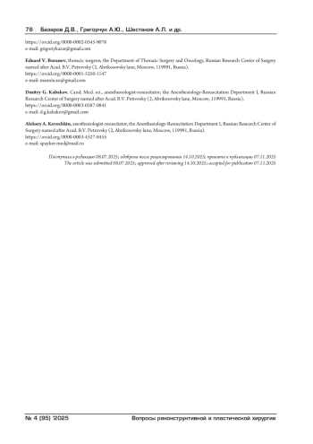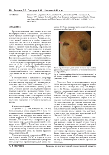 3. Топольницкий Е.Б., Шефер Н.А., Капитанова Д.В., Подгорнов В.Ф. Лечение постреанимационных рубцовых стенозов трахеи после перенесенной коронавирусной пневмонии COVID-19. Хирургия. Журнал им. Н.И. Пирогова. 2022;4:5-10. DOI: 10.17116/hirurgia20220415