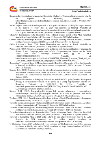 26. Хилханова Э. В., Хилханов Д. Л. (2024) Роль туризма в сохранении и поддержке миноритарных языков, российский и мировой контекст Научный диалог. Т. 13. № 6. С. 95-113. EDN: DHNXMX