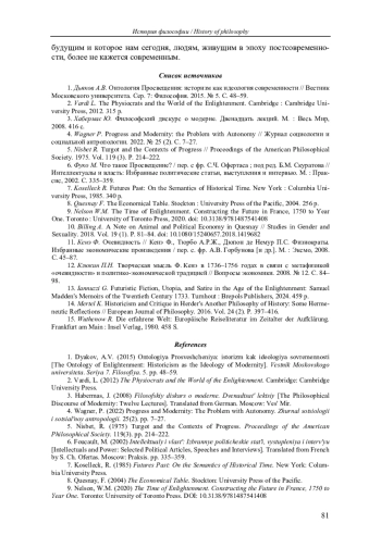 1. Дьяков А.В. Онтология Просвещения: историзм как идеология современности // Вестник Московского университета. Сер. 7: Философия. 2015. № 5. С. 48-59.