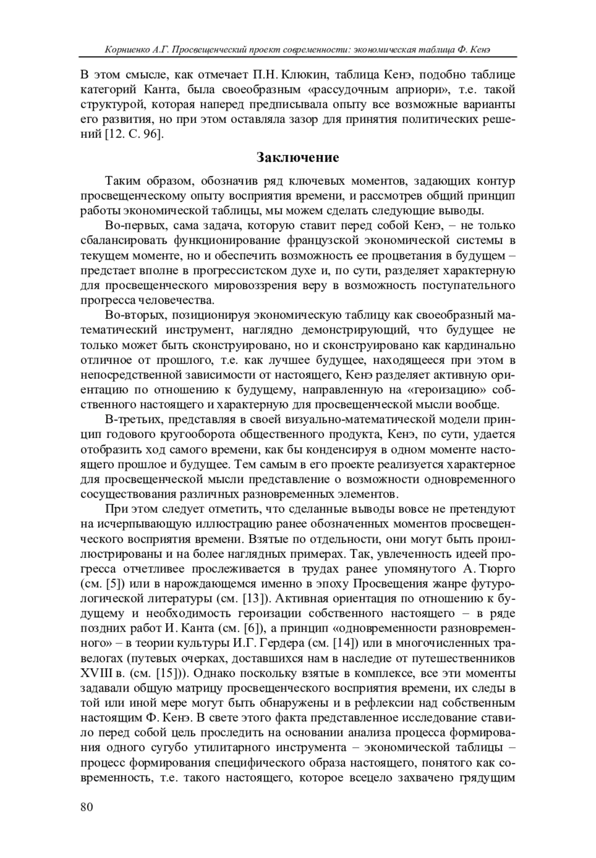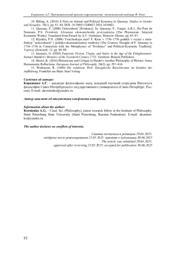 12. Клюкин П.Н. Творческая мысль Ф. Кенэ в 1736-1756 годах в связи с метафизикой “очевидности” и политико-экономической традицией // Вопросы экономики. 2008. № 12. С. 8498.