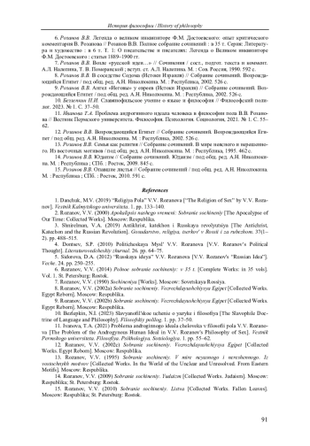 11. Иванова Т.А. Проблема андрогинного идеала человека в философии пола В.В. Розанова // Вестник Пермского университета. Философия. Психология. Социология, 2021. № 1. С. 55-62. EDN: YRXAXW