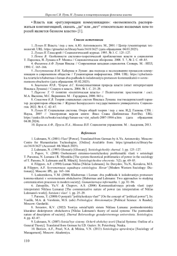 6. Зацепилин Ю.В., Чупров А.С. Коммуникативная природа власти (опыт интерпретации Никласа Лумана) // Социум и власть. 2004. № 1. С. 25-29.