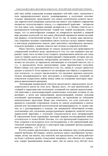В последнее время в исследовательской (отечественной чаще) литературе, особенно в ее гуманитарном сегменте, стали достаточно популярными два взаимосвязанных и даже взаимообусловленных (но, правда, не всегда очевидных для самих авторов) тезиса: констатация тотального (эксплицитно, а чаще имплицитно утверждаемого) релятивизма и идеологической (столь же явно или неявно провозглашаемой) ангажированности тех или иных выдвигаемых суждений исследователей, публицистов, общественных активистов и т. д.