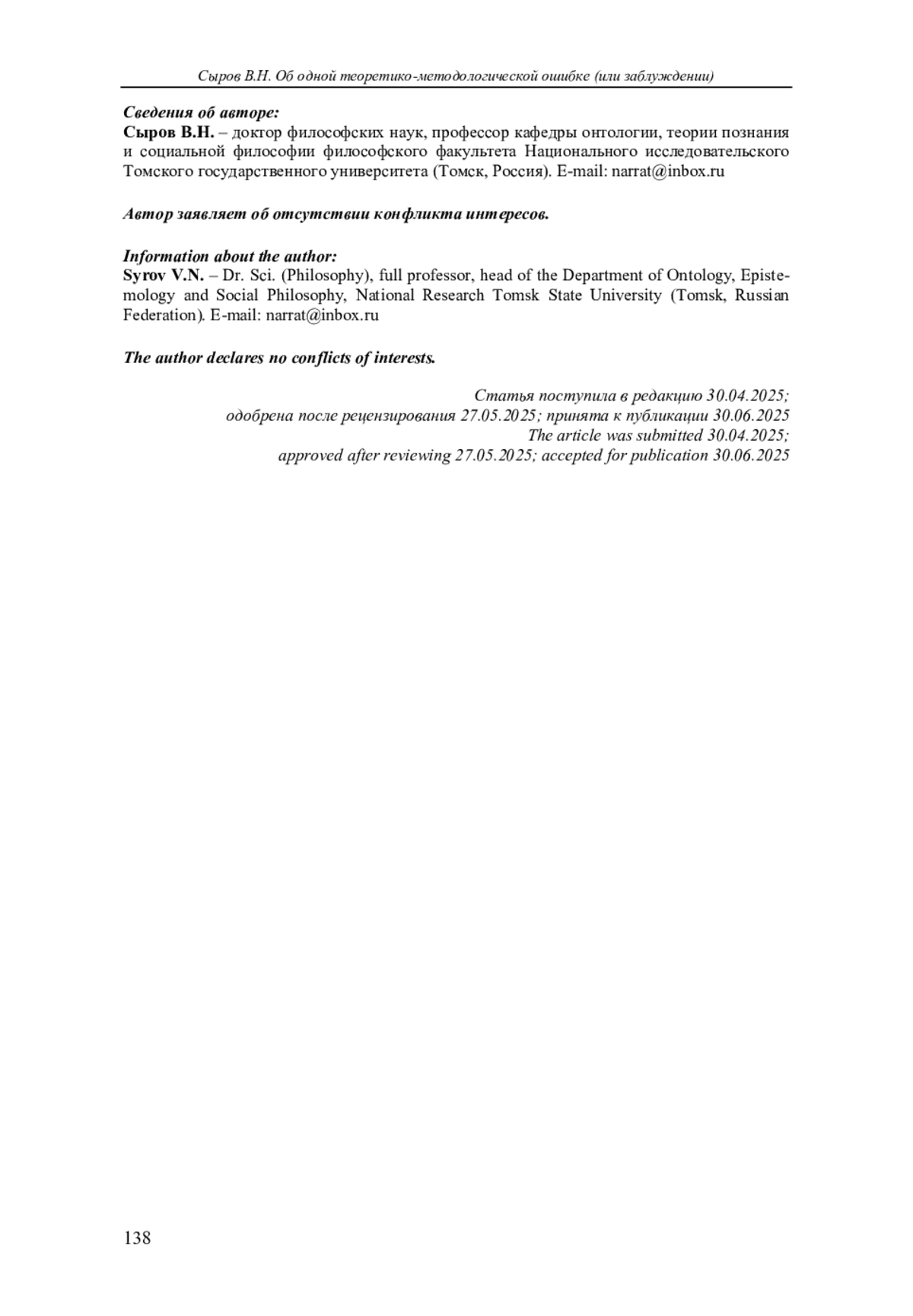 17. Овчинников А.В., Аникин Д.А. “Культура отмены” и “корпоративная отмена” в дискурсе социальной философии // Вестник Томского государственного университета. Философия. Социология. Политология. 2025. № 83. С. 76-87. EDN: XBSLYM