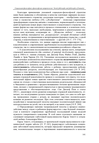 25. Звонарева А.Е. Теоретико-методологические основы исследования отцовских практик // Вестник Нижегородского университета им. Н.И. Лобачевского. Серия: Социальные науки. 2019. № 2 (54). С. 127-134. EDN: QXZHGM