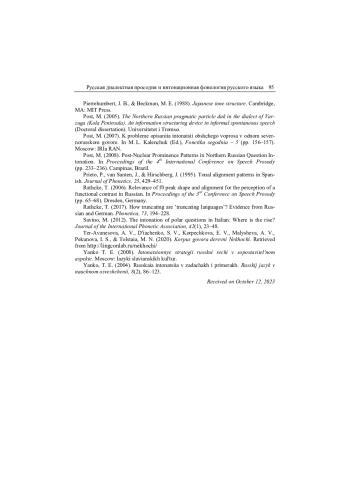 11. Князев 2023б - С. В. Князев. Севернорусская интонация: просодическое членение // Вопросы языкознания. 2023. № 2. C. 56-88. EDN: OYKNAP