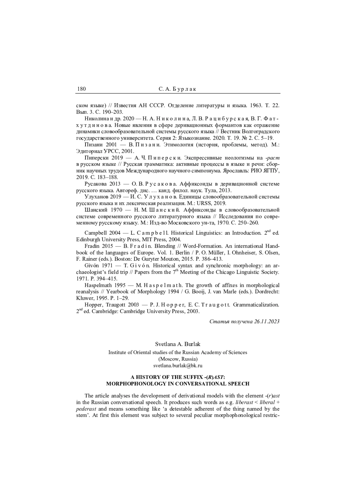24. Haspelmath 1995 - M. Haspelmath. The growth of affixes in morphological reanalysis // Yearbook of Morphology 1994 / G. Booij, J. van Marle (eds.). Dordrecht: Kluwer, 1995. P. 1-29.