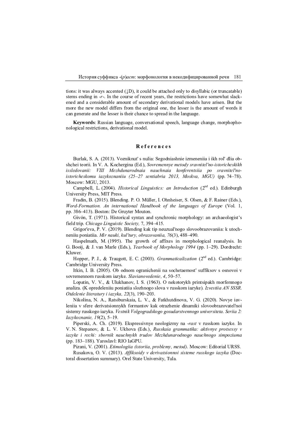 15. Николина и др. 2020 - Н. А. Николина, Л. В. Рацибурская, В. Г. Фатхутдинова. Новые явления в сфере деривационных формантов как отражение динамики словообразовательной системы русского языка // Вестник Волгоградского государственного университета. Серия 2: Языкознание. 2020. Т. 19. № 2. С. 5-19. EDN: YQCJIB