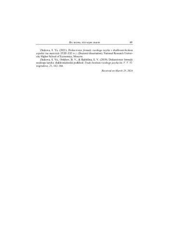 13. Жукова 2021 - С. Ю. Жукова. Дискурсивные формулы русского языка в диахроническом аспекте (на материале XVIII-XXI вв.). Дис.. канд. филол. наук. М., 2021.