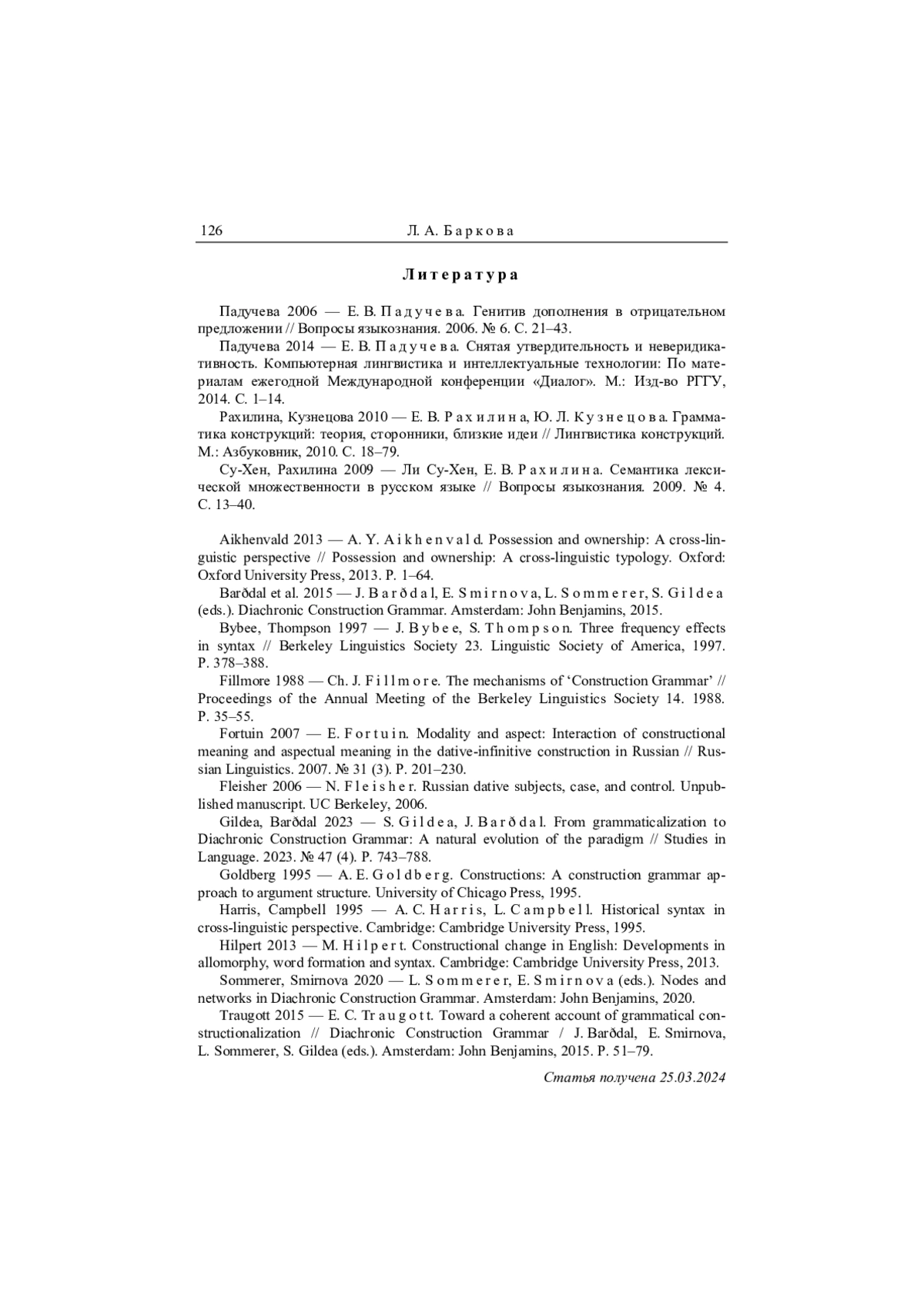 7. Barðdal et al. 2015 - J. Barðdal, E. Smirnova, L. Sommerer, S. Gildea (eds.). Diachronic Construction Grammar. Amsterdam: John Benjamins, 2015.