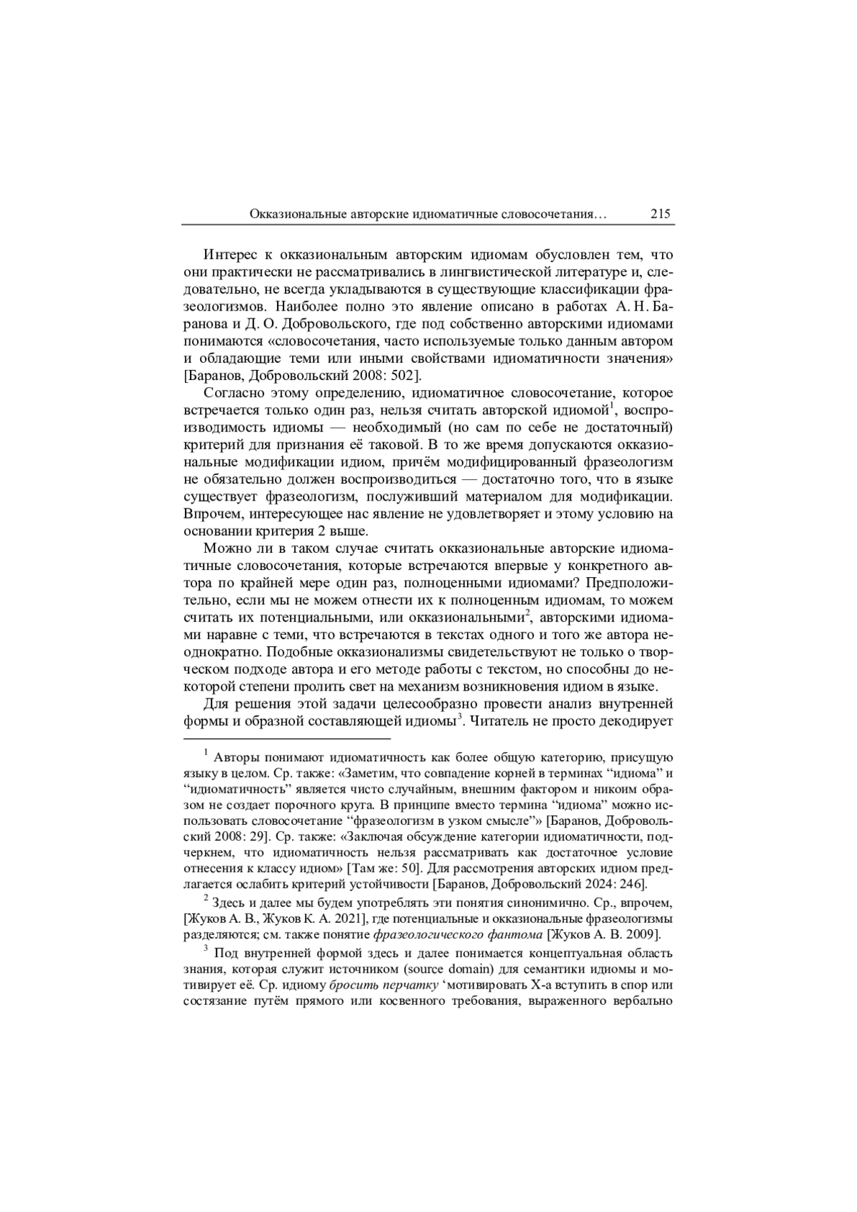 24. Жуков А. В., Жуков К. А. 2021 - А. В. Жуков, К. А. Жуков. К вопросу о потенциальных и окказиональных фразеологизмах (лексикографический аспект) // Лексикография цифровой эпохи: сборник материалов Международного симпозиума. Томск, 2021. С. 274-277. EDN: RFSVTS