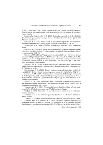 22. Шевелева 2019 - М. Н. Шевелева. О древнерусском глаголе имѣти, посессивных конструкциях и сложном будущем с имамь / имоу в ранних восточнославянских текстах // Вопросы языкознания. 2019. № 6. С. 32-50. EDN: MABLOX
