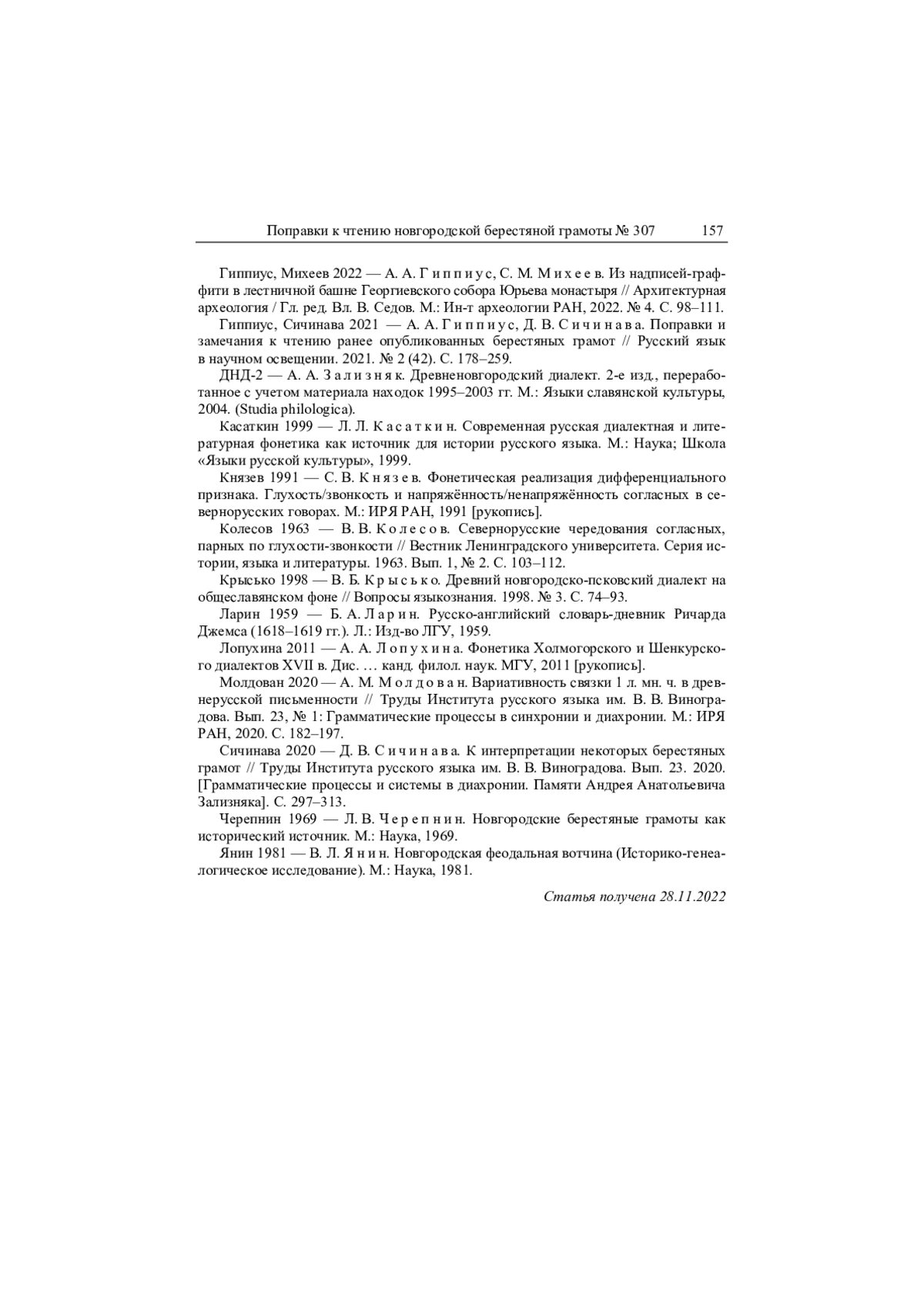 14. Сичинава 2020 - Д. В. Сичинава. К интерпретации некоторых берестяных грамот // Труды Института русского языка им. В. В. Виноградова. Вып. 23. 2020. [Грамматические процессы и системы в диахронии. Памяти Андрея Анатольевича Зализняка]. С. 297-313.