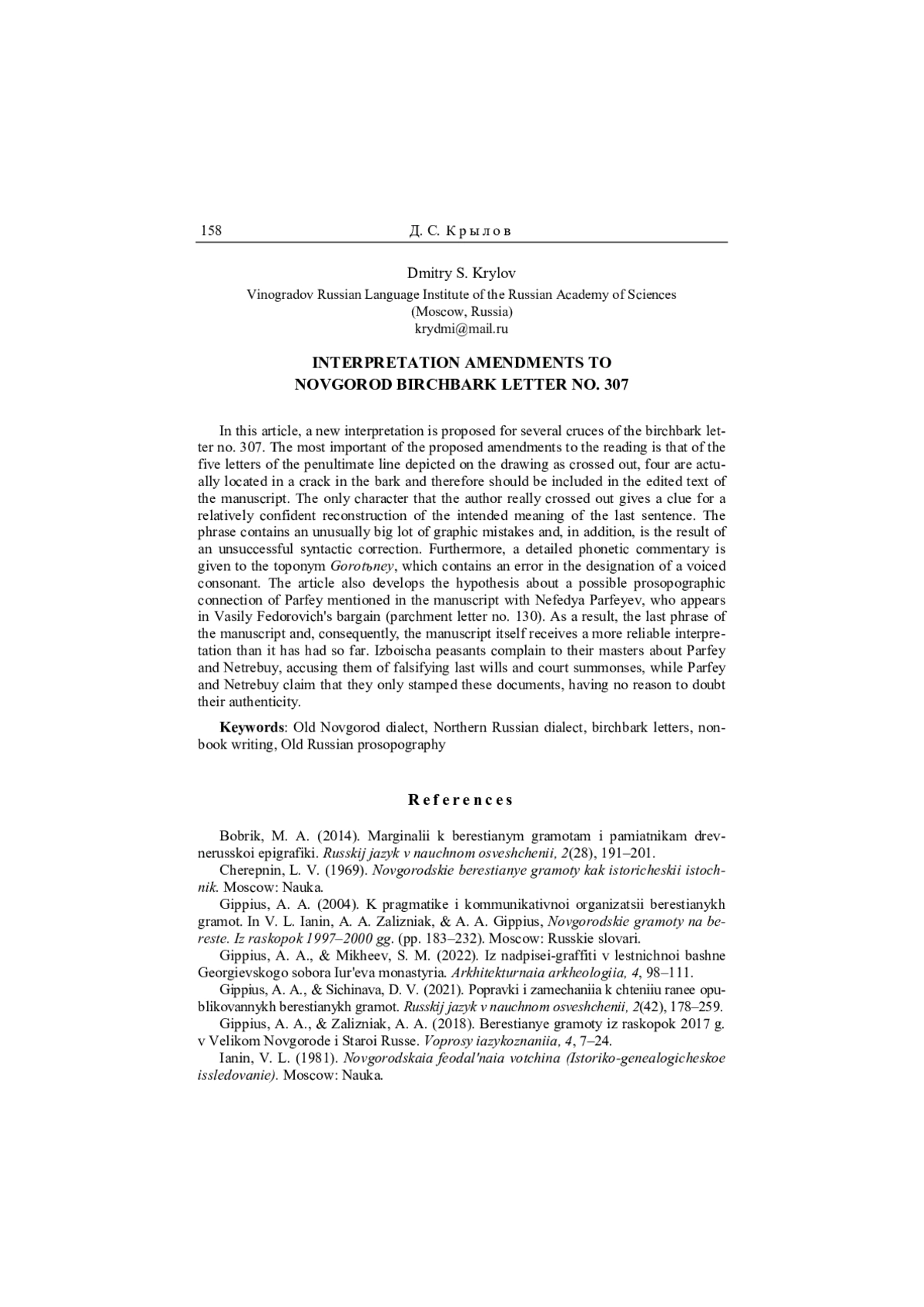 10. Крысько 1998 - В. Б. Крысько. Древний новгородско-псковский диалект на общеславянском фоне // Вопросы языкознания. 1998. № 3. С. 74-93. EDN: PYINVN