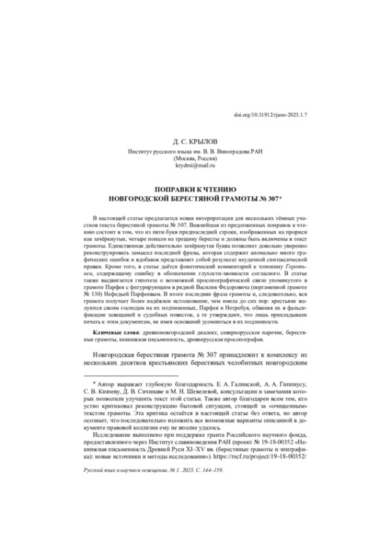 5. Гиппиус, Сичинава 2021 - А. А. Гиппиус, Д. В. Сичинава. Поправки и замечания к чтению ранее опубликованных берестяных грамот // Русский язык в научном освещении. 2021. № 2 (42). С. 178-259.