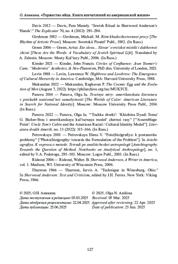 5. Панова О.Ю. Цветные миры: американская литература в поисках национальной самобытности. М.: Изд-во Моск. ун-та, 2014. EDN: VWLSGL