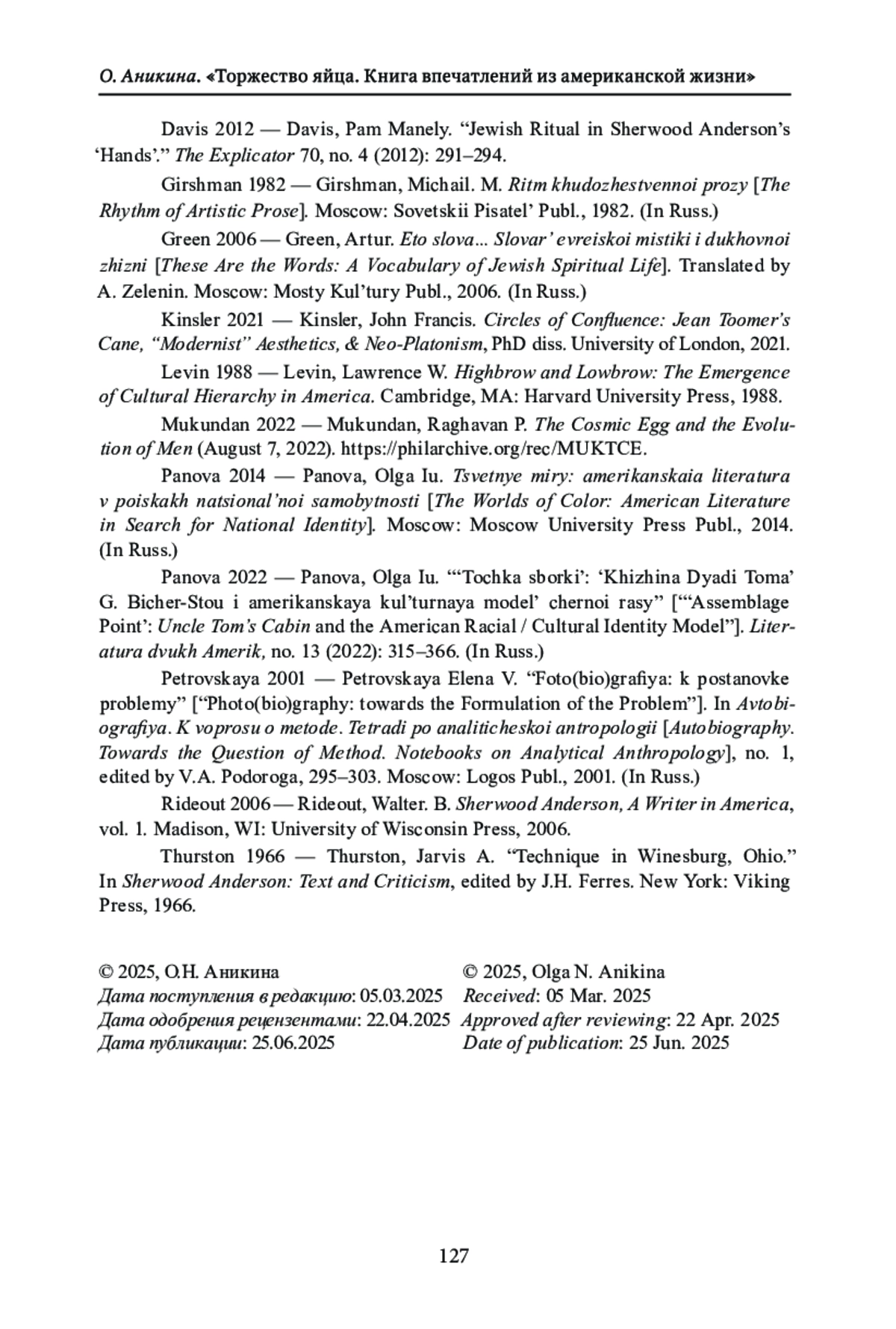 6. Панова О.Ю. “Точка сборки”: “Хижина Дяди Тома” Г. Бичер-Стоу и американская культурная модель черной расы // Литература двух Америк. 2022. № 13. C. 315-366. EDN: KGKNXU